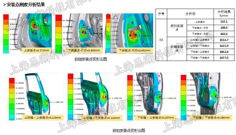 车门模态分析、扭转刚度、安装点强度、过开、下垂分析